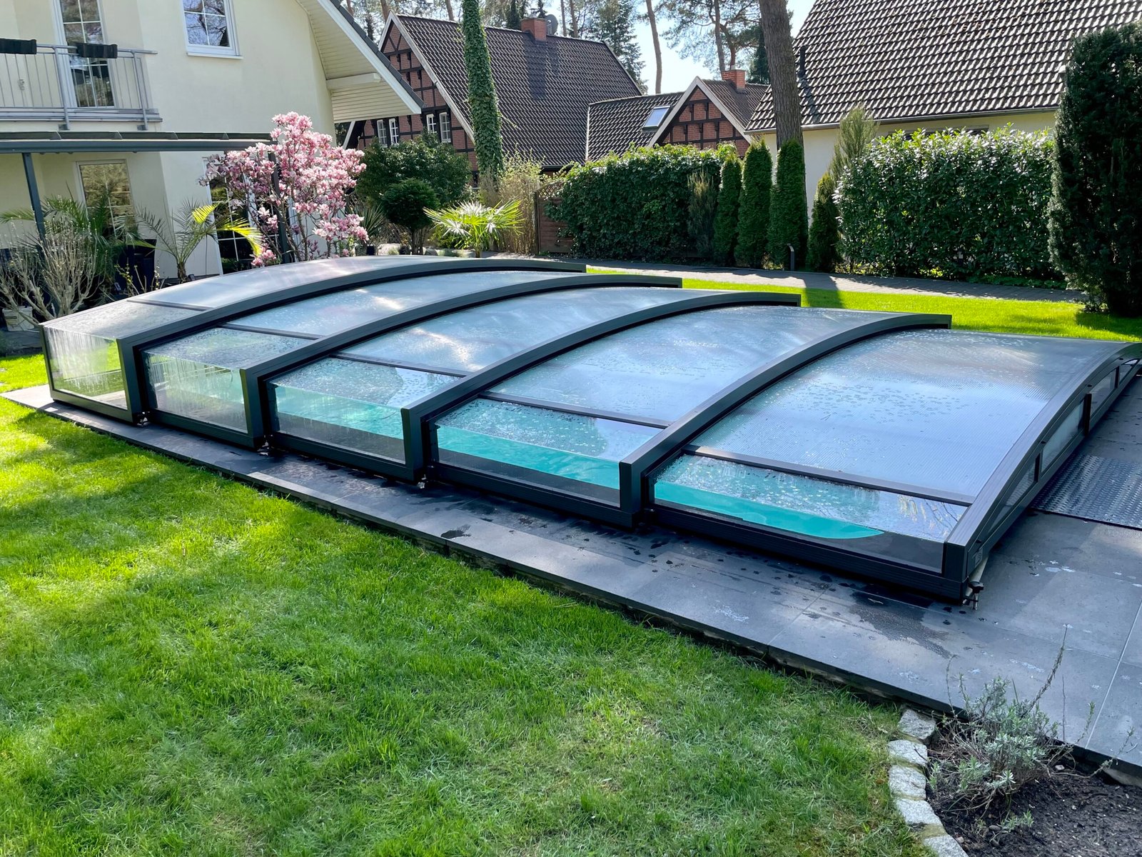 Schützen Sie Ihren Pool vor Verunreinigungen und verlängern Sie die Badesaison mit unseren stilvollen und funktionalen Poolüberdachungen. Sie bieten zusätzliche Sicherheit und Energieeinsparung.